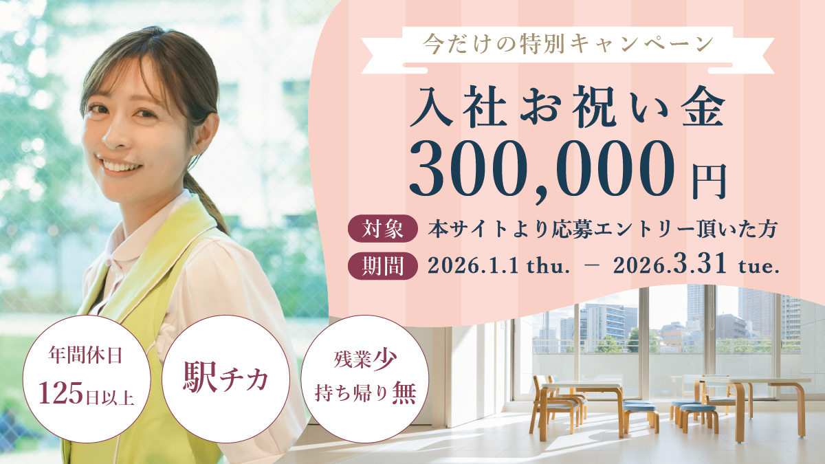 好評につき、施設限定で入社祝い金キャンぺーンを延長いたします!